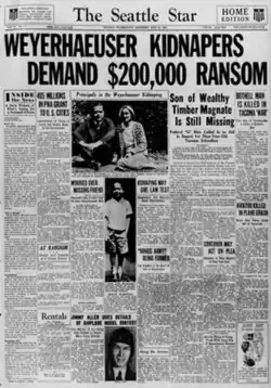 - ^ "Weyerhaeuser Kidnaper Is Released". The News Tribune. Tacoma, Washington. June 4, 1963. p. 1. Retrieved January 15, 2023 – via newspapers.com.