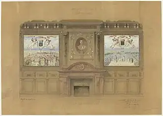 Upon returning to Paris, he was named inspector of works for the Court of Cassation. In 1871, he became their official architect. The year before, he had succeeded Félix Duban as architect of the École. In that capacity, he completed their "Glazed Courtyard", and installed a Renaissance museum in the chapel with its adjoining corridor.[1] In 1875, he was appointed architect for the Diocese of Laval, and designed a monument commemorating the Battle of Coulmiers, in Loiret. This led to his becoming a Knight in the Legion of Honor.[2]
