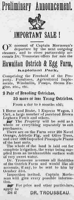 - ^ "Dr. Geo. Trousseau Dead". The Daily Bulletin. Honolulu. May 5, 1894. p. 2. Retrieved July 13, 2010.