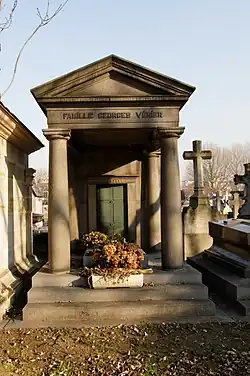 Georges Vésier died on 6 November 1938 following a major operation at the age of 80. At the time of his death he was a member of the steering committee of the Revue de Métallurgie, honorary president of the Chambre Syndicale des Métaux and president of the Compagnie Francaise des Métaux.[4] After his death Georges Desbrière, Director General of the CFM, retained his post, but the managing director Émile Demenge resigned.[13] Vésier was made a Knight of the Legion of Honour on 14 August 1900.[1] He was promoted to Officer of the Legion of Honour on 24 November 1906.[14] He was also a Knight of the Order of Leopold of Belgium.[5] He was buried in the family tomb at the Père Lachaise Cemetery.[11]
