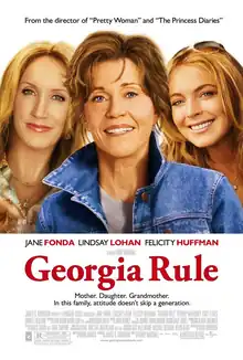 Georgia Rule is a 2007 American black comedy-drama film directed by Garry Marshall from a screenplay by Mark Andrus. It stars Jane Fonda, Lindsay Lohan, and Felicity Huffman. The film follows a rebellious young woman (Lohan) who is sent to spend the summer with her grandmother (Fonda) when her frustrated mother (Huffman) can't control her unruly behavior. Dermot Mulroney, Cary Elwes, Garrett Hedlund, Laurie Metcalf, and Héctor Elizondo also appear in supporting roles.