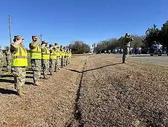 GSDF operations have included support to National Guard units during the Gulf War, participation in the 1996 Atlanta Olympic Games, emergency aid to agencies such as the Federal Emergency Management Agency (FEMA) and Georgia Emergency Management Agency (GEMA), support to Georgia National Guard units and their families since 2001, activation during the 2004 G-8 Summit at Sea Island,[11] the 2005 Katrina and Rita hurricane evacuations,[12] and response to Hurricanes Matthew, Irma, and Michael. In 2010, GSDF Soldiers were recognized by a special resolution of the Georgia Legislature[13] for their participation in Operation Healing Hands, providing disaster relief to earthquake victims in Haiti.[2] After the devastating outbreak of tornadoes across the southeast U.S. in May 2011, members of the GSDF participated in relief efforts in Lamar County and other hard-hit areas of the state.[14] GSDF Soldiers, including consumer advocate Major Clark Howard, assisted with vehicle removal following a huge traffic jam caused by Winter Storm Leon.[15]