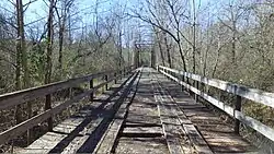 An old portion of SR 138 with a steel truss bridge crossing the Alcovy River in Walton County still exists on privately owned property.