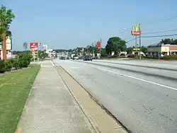 SR 138 begins at an intersection with SR 92 (West Campbellton Street) in Fairburn, within Fulton County. In town, it heads southeast to US 29/SR 14 (Roosevelt Highway). It continues southeasterly to an interchange with Interstate 85 (I-85; James D. "Jim" McGee Memorial Highway) in Union City. Farther to the southeast is SR 279 (Old National Highway), just prior to reaching the tripoint that is the meeting point of Fulton, Fayette, and Clayton counties. It runs along the Fayette–Clayton county line for a short while. During that stretch, it intersects SR 314 (West Fayetteville Road). After entering Clayton County proper, it meets SR 85 in Riverdale. Northwest of Jonesboro is an intersection with SR 138 Spur (North Avenue), which is part of the former route of the SR 138 mainline through town. SR 138 now passes north of most of the town. Just to the northwest of SR 138 Spur is US 19/US 41/SR 3/SR 54 (Tara Boulevard). At this intersection, SR 54 runs concurrent to the east for about 1 mile (1.6 km). On the northeastern edge of town, SR 54 splits off to the northeast on Jonesboro Road, and SR 138 curves to the southeast to meet is second intersection with SR 138 Spur (Stockbridge Road/Lake Spivey Parkway). Just before crossing into Henry County, SR 138 enters Stockbridge. In town, it has an interchange with I-75. The road re-enters Clayton County and slips out of the city limits for about 1 mile (1.6 km). It has an interchange with I-675 (Terrell Starr Parkway), during that stretch. After re-entering both Henry County and Stockbridge's city limits, the road meets US 23/SR 42 (North Henry Boulevard). The three routes head concurrent to the east, until just outside the city. After the concurrency ends, SR 138 heads northeast to an intersection with SR 155 (Snapfinger Road), just before entering Rockdale County. The road crosses over the South River and intersects SR 212 (Scott Highway). In Conyers, SR 138 meets SR 20 (McDonough Highway). The two routes run concurrently to the north and northeast through town, with an interchange with I-20/US 278/SR 12 (Purple Heart Highway), until SR 20 heads northwest on Sigman Road NE and SR 138 continues to the northeast in the northeastern part of town. The highway crosses over the Yellow River and cuts across the northernmost corner of Newton County, before entering Walton County. Shortly after the county line is Walnut Grove, where SR 81 (Leone Avenue) runs through. SR 138 continues to the northeast and enters Monroe. In town, is an intersection with SR 10 Business (West Spring Street). It then meets at an interchange with US 78/SR 10.[1] It then finally meets its eastern terminus a fifth of a mile north of the previous interchange. The roadway continues northeast for a mile as Charlotte Rowell Boulevard to Georgia State Route 11 in Monroe.