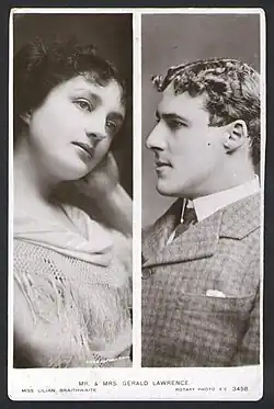 He was married, firstly, to stage and screen actress Dame Lilian Braithwaite in 1897; their child was actress Joyce Carey (born Joyce Lawrence). That union ended in divorce in 1905 following his adultery and desertion.[20] His second and third wives were also actresses. His second marriage in about 1906 was to the American actress Fay Davis, who appeared with him in many of his later productions. This ended with her death in 1945. His third marriage was to Madge Compton in 1949, (born Madge Mussared, 1893-1969); this marriage ended with his own death. With Davis he had a daughter, Marjorie Fay Lawrence (1908–1930), who was murdered by her husband Eardley Maskall Cotterill in Gerald's home at 11 Ornan road Haverstock Hill. Eardley then shot himself.