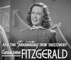 Fitzgerald's success led her to New York and the Broadway stage in 1938. She made her American debut opposite Orson Welles in the Mercury Theatre production of Heartbreak House. Hollywood producer Hal B. Wallis saw her in this production and subsequently signed her to a contract with Warner Bros.[8] She had two significant successes in 1939: a role in the Bette Davis film Dark Victory,[9] and an Academy Award nomination for her supporting performance as Isabella Linton in William Wyler's Wuthering Heights.[5]