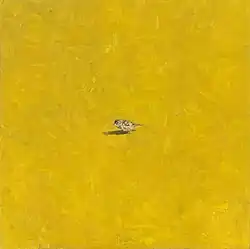 After an attempt to move away from art, the muse, after having nearly throttled him, took hold of him and has not let go. His attempt to live outside of art in France was the catalyst for his discovery of the joy of painting through the simplicity of his subject and the emphasis on the transparency of his palette. Add he was looking for study material in the Amsterdam Zoo (Artis), the sparrow forced itself upon him, as a free and everyday subject. The little bird ended up in the center of a square canvas, with the painter's experiment (or experience) happening in the large background of the painting. The sparrow continues unmoved by the surrounding landscape, becoming mythic in its serenity and through the use of reproduction.