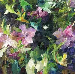 Gerard Prent created a large series of “Mussen” (Sparrows in Dutch), of which many paintings found their way to collectors and admirers. The simplicity of the subject has remained: from 2004 onwards Prent continues to paint just a simple corner in the garden, or a spot on the side of the road, with large strokes and exuberant colours and shapes. According to Gerard Prent, it is not the subject that matters, but the image, the creation of pure art.