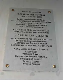 Monza has three churches dedicated to him: San Gerardo al Corpo, San Gerardino (also known as San Gerardo Intramurano), and Sancto Gherardo.
