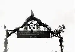 "Victory Arches" with swastikas and red stars