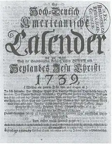 Pennsylvania was the population, religious, cultural, and intellectual center of German America. While few Germans lived in Philadelphia itself, it was a convenient center for publications. Benjamin Franklin tried and failed to set up the German language newspaper. The first publisher was Christopher Sower (also spelled Sauer or Saur) (1693-1758) who emigrated to Philadelphia in 1724 and began publishing German language books, Bibles, and religious pamphlets in 1738. In 1739 he started a monthly paper, Der Hoch-Deutsch Pennsylvanische Geschichts-Schreiber ("High German Pennsylvania Annalist"), later named Pennsylvanische Berichte ("Pennsylvania reports") and Die Germantauner Zeitung. It was one of the most influential pre-Revolutionary newspapers in the colonies.[1] Sower emphasized news and controversy regarding the numerous Pennsylvania Dutch religious sects; he angered the large Lutheran community by regularly ridiculing its formalism.[2][3]