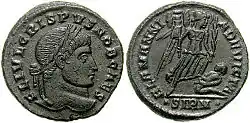 - ^ a b Roman Imperial Coinage, Crispus, VII 49; LRBC 803.