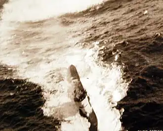 On 5 October, she was sunk by rockets fired by a British Lockheed Hudson of No. 269 Squadron RAF in the Denmark Strait,[4] (between Greenland and Iceland).[5]