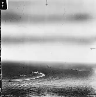 ![]() U-462 and U-461 taking evasive action during an air attack on 30 July 1943