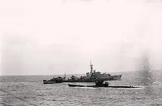 ![]() U-516 surrenders to HMS Cavendish (R15) on 10 May 1945