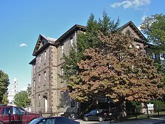 Germantown Grammar School No. 1 (Opportunities Industrial Center, Inc.) was built in 1874 at 5933-51 McCallum Street in Philadelphia. Originally known as the "Germantown Combined Grammar, Secondary, and Primary School," it was designed by Louis H. Esler, the first architect to be appointed as Building Supervisor by Philadelphia's school district, and is a three-story, serpentine brownstone building in a combined Italianate / Gothic-style. During the mid-1880s, as the school's popularity grew, Philadelphia school leaders determined that more space was needed. As a result, they erected a new annex nearby at 45 West Haines Street, named it "Germantown Grammar School No. 2," and renamed the original school building as "Germantown Grammar School No. 1." The building principal at this time was James Monroe Willard.[4]