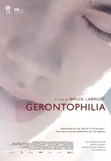Gerontophilia is a 2013 Canadian romantic comedy-drama film directed by Bruce LaBruce[2] and written by LaBruce and Daniel Allen Cox. The film had its world premiere in the Venice Days section at the 70th Venice International Film Festival on August 28, 2013,[3] and was screened in the Vanguard section at the 2013 Toronto International Film Festival.[4]