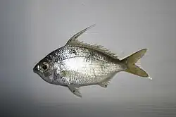 Gerres filamentosus, the whipfin silver-biddy, flagfin mojarra or threadfin silver belly, is a ray-finned fish native to the coastline of Africa and Madagascar east to Japan, Australia and New Caledonia.[2]