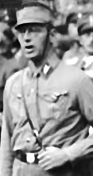 After returning to Germany, Korsemann joined the Nazi Party (membership number 47,735) and its paramilitary unit, the Sturmabteilung (SA), in November 1926.[2] As an early Party member, he was a holder of the Golden Party Badge. While an SA-Standartenführer, he led SA-Standarte VI. After promotion to SA-Oberführer and SA-Brigadeführer, he was the SA leader in southern Hanover Province in 1931–1932. He was then promoted to SA-Gruppenführer in October 1932 and led the SA Gruppe Niedersachsen (Lower Saxony) until early 1937. At that point, he left the SA and joined the Ordnungspolizei (Orpo), Germany's uniformed police force. He worked as an administrator in the Orpo Main Office in Berlin until April 1939, working his way up to Oberstleutnant of Police.[3]