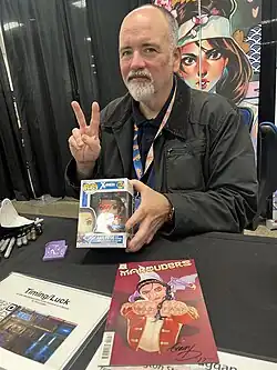 ![]() Duggan at a signing for Deadpool #300 at Midtown Comics in Manhattan in 2018. | |