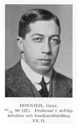 Gert Bonnier (1890 – 1961)[1] was a Swedish geneticist and Drosophila researcher. He was a professor in the zoology department at Stockholm College.[2][3][4]