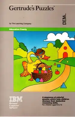 Gertrude's Puzzles is an educational video game for the Apple II, Commodore 64, and IBM PC compatibles released in 1984 by The Learning Company.[1] It is a sequel to the game Gertrude's Secrets. Gertrude's Puzzles was designed by Teri Perl.[2] Gertrude's Puzzles, like Gertrude's Secrets, consists of a series of rooms,[3] each of which contains a logic or categorization puzzle to solve using shapes and colors.