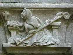 The second miracle attributed to Gertrude in the Vita took place as the anonymous author and his friend were peacefully sailing over the sea on the monastery's business. This account is felt by some to indicate that the author was an Irish monk.[9] In the account, an incredible storm appears as well as a sea monster, causing great despair as "the sailors... turned to their idols," evidence of the persistence of paganism at the time.[9] In desperation, the author's friend cries out to Gertrude to save himself and his companions from the storm and monster. Immediately the storm subsides and the monster dives back into the deep.[4]
