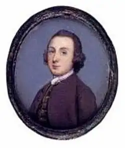 Gervase Spencer was an English miniaturist.[1] Originally a footman to a "Dr W," Spencer taught himself the art of painting in watercolour on ivory, and was encouraged by his employer.[2] Since enamels were in vogue at the time, he also mastered the complexities of this process. Spencer's prodigious output is divided almost equally between enamels and ivory.[3] Spencer's early work closely resembles that of Jean-André Rouquet (1701 - 1758) and may well have been influenced by him. His first works date from the early 1740s, about the time that he would heve been employed as a servant, with the majority of his production coming between 1745 and 1761. Spencer trained Henry Spicer (1743 - 1804) and possibly Penelope Carwardine (1729 - 1804) to continue the tradition and art of miniatures on enamel and ivory. Spencer met many of the leading London artists of his days including Sir Joshua Reynods (1732 - 1792) who took his portrait. His status was such that in 1763, the year of his death, he was one of only twenty-four miniaturists listed in Mortimer's Universal Director, a directory of leading professionals of all trades.[4] He was a very fair artist and generally signed his works G. S.[5] Spencer married her intimate friend and his only daughter had a husband whose surname was Lloyd.[6] He chiefly showed female sitters and painted with thinly diffused tints, over a delicate grey under.[7]
