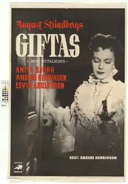 Getting Married (Swedish: Giftas) is a 1955 Swedish drama film directed by Anders Henrikson and starring Anita Björk, Elsa Carlsson and Edvin Adolphson.[1] It was shot at the Sundbyberg Studios of Europa Film in Stockholm. The film's sets were designed by the art director Arne Åkermark. It is based on the short story collection Getting Married by August Strindberg. It is also known by the alternative title Of Love and Lust, the name under which it was given on its 1959 United States release alongside A Doll's House.
