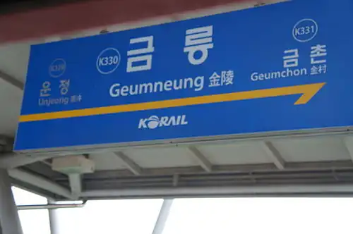 Geumneung Station (Korean: 금릉역) is a railway station on the Gyeongui–Jungang Line. It is located in the Geumchon neighborhood of Paju city, Gyeonggi-do, in the far northern region of South Korea.