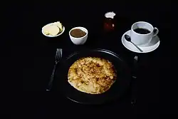 A geuteling (plural geutelingen) is a traditional food of the Flemish Ardennes region of Belgium. It bears some similarity to a pancake.