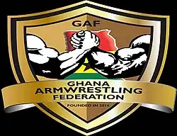 The Ghana Armwrestling Federation (GAF) is the national federation in charge of regulating armwrestling in Ghana. The Ghana Armwrestling Federation was inaugurated in September 2016.[1] The federation was founded by broadcast journalist Charles Osei Asibey and inaugurated in September 2016 by the National Sports Authority as the 40th sporting federation in Ghana.[2] The Ghana Armwrestling Federation is affiliated to the World Armwrestling Federation and has been a member of the international body since 2016.[3] Charles Osei Asibey is the President of the Ghana Armwrestling Federation.[4] Husseini Akueteh is the head referee of the Ghana Armwrestling Federation.[5]