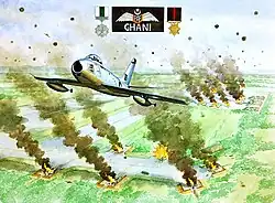 An artist's rendition of a Ghani Akbar during the PAF raid at Pathankot in India. Medal on the left is the Sitara-e-Jurat, medal on the right is Sitara-e-Harb 1965.