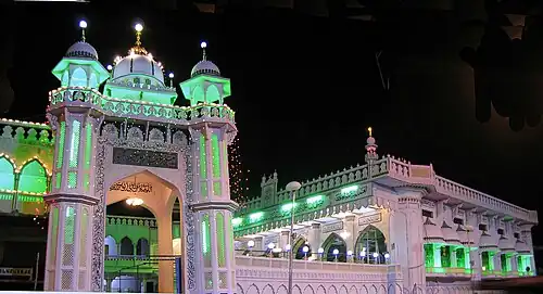 The Masjid Ghareeb Nawaz (Arabic: مسجد غريب نواز), sometimes spelled as the Masjid Gharib Nawaz, and also known as the Gharib Nawaz Mosque, is a Sufi mosque affiliated with the Barelvi movement, located in the Mominpura area of Nagpur, in the state of Maharashtra, India.[1] The mosque was named after Khwaja Moinuddin Chishti, a Sufi saint. The dome of the mosque is similar to the Shrine of Khwaja Gharib Nawaz.[2]