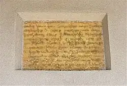 By the blessing and grace of almighty God this miraculous sacred cathedral is built at the expense and with the donations of the parish of the church of Amenaprkich Ghazanchetsots of the city of Shushi, the construction [was begun] in 1868 at the reign of the all-powerful emperor of all Russia Alexander II and the patriarchate of Gevorg IV and was completed in 1887 at the time of the coronation of the son of His Majesty the blessed emperor Alexander III and Catholicos Markar I, on 20 September 1888.