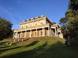 Throughout childhood, Maxwell lived with her family in Oxford at Headington Hill Hall, a 53-room mansion, where the offices of Pergamon Press, a publishing company run by her father, were also located.[10][18][20] Her mother said that all her children were raised as Anglicans.[21] Maxwell first attended Oxford High School for Girls in North Oxford and then, at age nine, was enrolled at Edgarley Hall preparatory school in Somerset, followed by Headington School at age 13.[22] She attended Marlborough College to study for A-Levels, before going on to earn a degree in Modern History with Languages from Balliol College, Oxford, in 1985.[5][22][23] While at Balliol she fraternised with Boris Johnson and Anna Pasternak.[23][24][25][26]