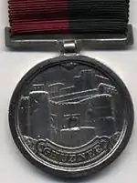 This was the second medal awarded to all ranks of the British Army for a specific campaign, the Waterloo Medal being the first.[1] It was struck in 1839 on the orders of Shuja Shah Durrani, the Shah of Afghanistan, to show his appreciation to the British forces who had helped restore him to his throne by storming the fortress. As the Shah died before the medals could be distributed, it was finally bestowed by the Governor-General of India in the name of the Government of India.[2]