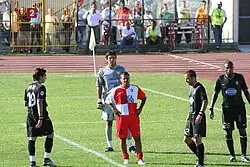 Buffon played youth football as a midfielder with La Spezia–based amateur club U.S.D. Canaletto Sepor, before returning to Carrara to play for Perticata, then Bonascola.[8] Despite offers from Bologna and Milan,[9][nb 2] Buffon began his career with the Parma youth system in 1991, as the team's coach was struck by his physical qualities.[11][10]At the youth academy, he played in several out-field positions, especially as a midfielder, before switching to goalkeeper.[12][13] His idol Thomas N'Kono inspired this change of position due to his goalkeeping for Cameroon at the 1990 World Cup; when both of the Parma youth team's keepers suddenly suffered injuries, Buffon was called upon due to his interest, height and physical attributes.[12][14][15] He quickly adapted to this role, and within two weeks he had been promoted to first keeper of the Parma youth team.[9][12]