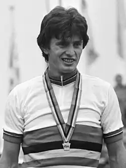 Gianni Giacomini (born 18 August 1958) is a retired Italian cyclist. In 1979 he won the amateur road race at the World Cycling Championships. Next year he competed at the 1980 Summer Olympics and finished in 5th and 18th place in the 100 km time trial and road race, respectively.[1] In 1981 he turned professional. During his short career he suffered from a health problem (narrowing of the leg artery), and after winning Giro di Basilicata in 1983, retired from cycling.[2][3]