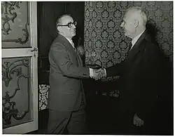 ![]() Gianni Granzotto shaking Sandro Pertini's hand | |