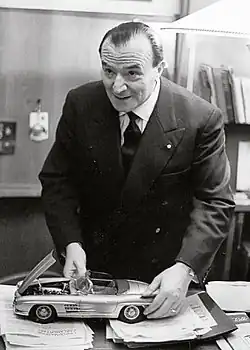 Blessed with an enthusiastic approach to life, Mazzocchi had a passion for cars. He saw them as vital instruments of personal and social emancipation. For him, cars epitomised individual freedom and independence.[1][5] In the editorial of the first edition of Quattroruote, published as Italy's post-war boom in car ownership was accelerating, he wrote, "We want the car to become the means through which everyone will live better".[8][c] He also expressed his enthusiasm as a collector of cars, though sources are vague over how many he had at any one time. In the words of one source, the cars "came and went. He tried them, bought them, gave them away ...".[8] He was particularly proud of his first Citroën DS.[8] He loved his sports cars, especially the Alfa Romeos, and was also a Ferrari enthusiast.[8]