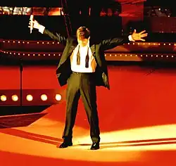 In 2000, Eros Ramazzotti produced and penned all songs in Morandi's album Come fa bene l'amore.[4] The lead single "Innamorato" premiered at the 50th Sanremo Festival, placing third.[5] In 2002, Morandi co-hosted with Lorella Cuccarini and Paola Cortellesi the Rai 1 Saturday night show Uno di noi,[8] and released the album L'amore ci cambia la vita, which was certified double platinum.[9] In 2004, he released A chi si ama veramente, an album to which collaborated Gaetano Curreri, Luca Madonia and Mariella Nava,[9] which like the previous one sold over 200,000 copies.[10]