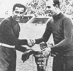 Gianpiero Combi (Italian pronunciation: [dʒamˈpjɛːro ˈkombi]; 20 November 1902 – 12 August 1956) was an Italian footballer who played as a goalkeeper.[2] He spent his entire club career at Juventus, where he won five Italian League titles. At international level, he won the 1934 World Cup with the Italy national team, as well as two Central European International Cups (in 1930 and 1935), and an Olympic bronze medal in 1928.[3]