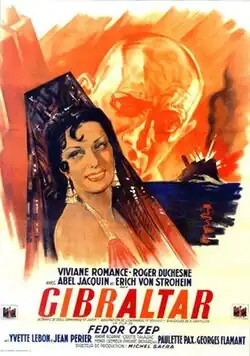 Gibraltar is a 1938 French spy film directed by Fedor Ozep and starring Viviane Romance, Roger Duchesne, Abel Jacquin and Erich von Stroheim.[1][2] It was shot at the Joinville Studios in Paris, with location shooting taking place in Gibraltar itself despite the Spanish Civil War being fought across the border.[3] The film's sets were designed by the art director Georges Wakhévitch. It was later remade in 1964 under the same title.