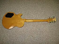 The bridge is a standard Gibson Tune-o-matic, less heavy than the Schaller-made rectangular bridges from the mid-1970s, often called "harmonica" bridges. The pick-ups are not the original's ceramic sealed Bill Lawrence-designed "super humbuckers", but two humbucking pickups with four-conductor split-coil wiring—a 490R in the neck and a hotter 498T in the bridge. This is similar to what is on offer in some Les Pauls. Colours on sale in 2012 are "Antique natural" - like the original 1970s all-maple maple neck L6-S - and "Silverburst" with a baked maple fretboard. No ebony fretboard model is on sale. The current L6S neck does not feature the unique "narrow at the nut and wider near the body" taper of the 1970s guitar, but a conventional Gibson shape. The chamfered body shape and 24 frets are of similar design to the 1970s classic, except that the newer version is a two-piece maple body, as opposed to a one-piece (I own one verified by Gibson to be a 1976 L6-S Custom that’s a 2-piece maple body)bodywork on the original.