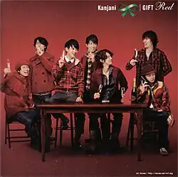 "GIFT" is a triple-single released by the Japanese boyband Kanjani Eight—stylized Kanjani∞. The three singles are the band's 11th, 12th, and 13th singles. The songs were released during the Christmas period. Each single release, except "Green", contains two songs; Green has three songs. Each single has cover art reflecting the color theme of each single. GIFT was advertised as a gift from the group members to their fans. The three singles were sold at a special price of ¥888 and were a limited-press release.