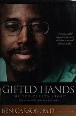 Gifted Hands: The Ben Carson Story or simply Gifted Hands is an autobiographical book about the success story of Dr. Ben Carson, a neurosurgeon and future politician, and his life going from a failing student to leading a team of surgeons in the first known separation of conjoined twins joined at the back of the head.[1] Co-written by Ben Carson and Cecil Murphey,[2] Gifted Hands was adapted into a film of the same name by director Thomas Carter in 2009. In the film, Dr. Carson was portrayed by actor Cuba Gooding Jr.[3]