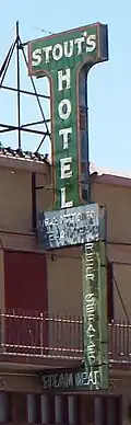 - The Stout Hotel was built in 1927 and is located at 113 East Pima Street. Known as "The Jewel of the Desert", the hotel ceased its operations in the 1980s. The hotel is listed as historical by the Henry C. Trost Historic Organization. The building was listed in the National Register of Historic Places on September 24, 2018, ref. #100002980.