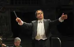 He conducted many renowned Italian and European orchestras among which: RAI Symphony Orchestra of Turin, Orchestra della Toscana of Florence,[5] "Arturo Toscanini" Symphony Orchestra of Parma, Teatro Regio of Turin, Teatro Massimo of Palermo, "Pomeriggi Musicali" of Milan,[6][7] "Haydn" Symphony Orchestra of Trento and Bolzano, Göteborgs Symphoniker (Sweden), BRT Filharmonisch Orkest Brussels (Belgium), Turku Philharmonic (Finland).[8]