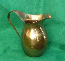Gilding metal is used for various purposes, including the jackets of bullets, driving bands on some artillery shells,[3] as well as enameled badges and other jewellery. The sheet is widely used for craft metalworking by hammer working.[1] It is also used particularly as a lower-cost training material for silversmiths. Starting in 1944, shell casings made of gilding metal were melted down by the United States Mint to be made into pennies.[4] These pennies replaced the less popular steel cent of 1943, and the pennies of this composition were produced until 1946.